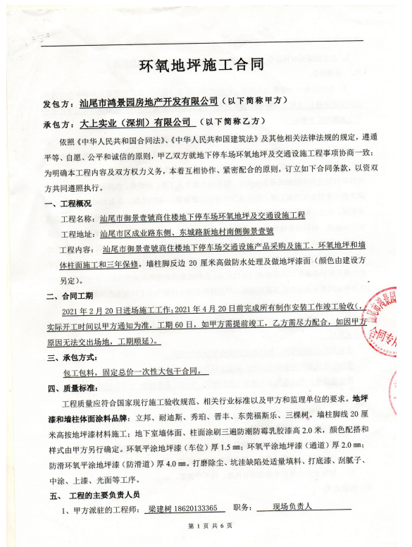工程名稱: 汕尾市御景壹號地下停車場環氧地坪及交通設施工程