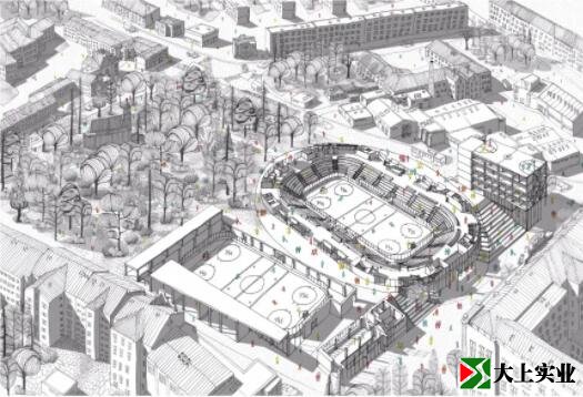 該市現存的曲棍球場建于1956年,是一個日益退化的室內運動場,該項目將對原有的結構進行重新設計,擴建為一座可容納5600名觀眾的四層多功能中心。