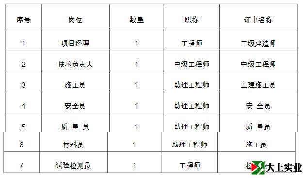 1、本項目的各施工人員由項目部統一調配,其中主要的機械操作手、中高級技術工人為我公司自有職工,勞務隊伍選用常年與我公司合作,具備較強施工能力且成建制的施工隊伍,保證工程順利實施。