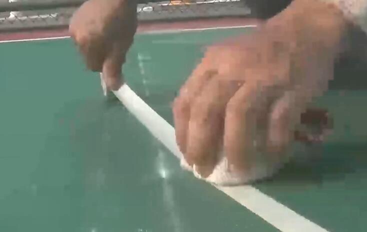 面漆層施工分為:標記界線、滾涂、打磨、清掃、修補面層和邊角等;