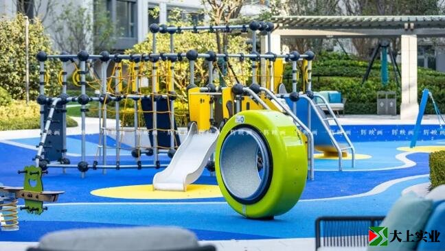 高品質住宅游樂場往往作為園區(qū)交付的核心亮點之一,其品質呈現(xiàn)效果來自于完成面平整度、排水效果、顆粒顏色組合與器械及周邊環(huán)境和諧度、膠水抗黃變性等設計施工的綜合管理。