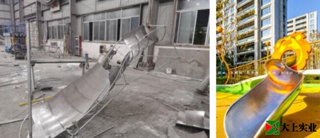 異形滑梯通過不銹鋼板人工鍛造工藝,控制板弧度及直順度保證滑梯品質及安全舒適性。