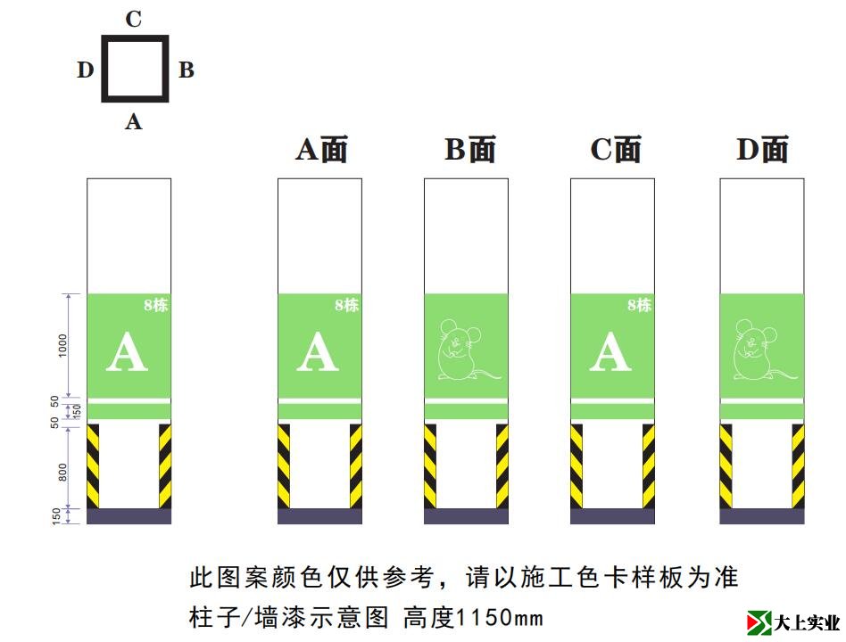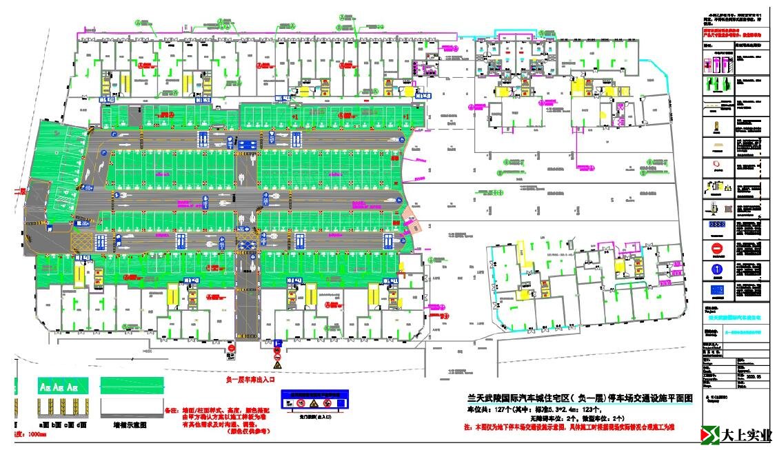 墻、柱、地面涂刷與車位分區進行色彩統一,進而實現功能與視覺的統一又不失整潔。