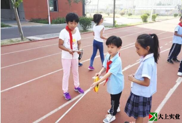 孩子們來到操場上,迅速按照前一天晚上各學習小組制定好的測量方案分小組開始對操場進行測量。