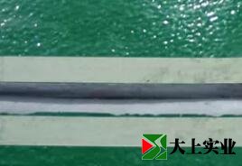 2. 將破損的伸縮縫內(nèi)清理干凈,縫內(nèi)兩側(cè)用角磨機(jī)打磨清理,露出新鮮混凝土(這一點(diǎn)很重要),用吸塵器將縫內(nèi)徹底清理干凈,要確保基面干燥;在縫兩側(cè)地面上粘貼美紋紙,并在縫內(nèi)填充泡沫條(也可以灌注干燥的石英砂),預(yù)留出一定的深度(建議縫寬、深比例為≥1:1)的工作面。