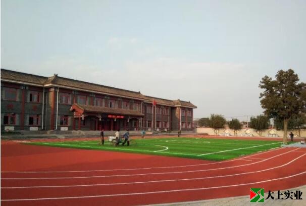 人造草足球場。新的塑膠跑道平整劃一,耐磨性強。塑膠良好的彈性和防滑性,可有效保護學生運動時帶來的傷害,是我區進一步推動學校基礎設施建設,優化育人環境,改善學校體育運動條件的又一項利學利教的民心工程。