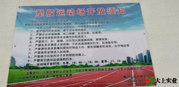 學(xué)校高度重視塑膠運(yùn)動(dòng)場的使用和保護(hù),在校門口顯目位置掛上《塑膠運(yùn)動(dòng)場開放須知》,并把紙質(zhì)的須知分發(fā)到入校的每個(gè)人手中,確保建設(shè)項(xiàng)目發(fā)揮最大的作用。