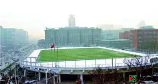 北京市首座架在城市繁華地帶空中的運(yùn)動(dòng)場(chǎng),由13根46米長(zhǎng)的大跨度混凝土梁支撐起來(lái),建成后已成為金融街地區(qū)的一景。該工程地下兩層、地上一層,高4.6米的屋面設(shè)計(jì)為架空運(yùn)動(dòng)場(chǎng),包括一個(gè)標(biāo)準(zhǔn)的400塑膠跑道和一塊