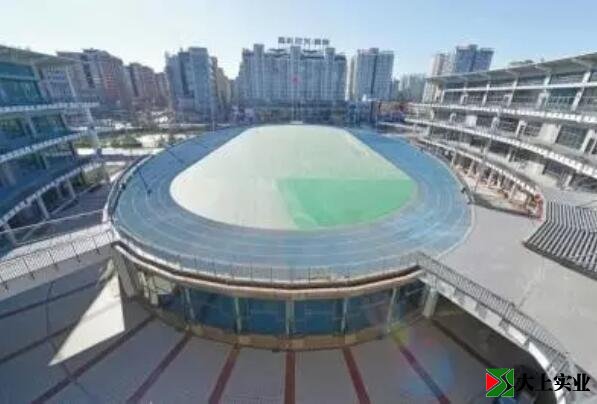 山清水秀的天臺(tái)縣城,若登到高處俯瞰全城,會(huì)看到一個(gè)非常特別的建筑——一幢橢圓形4層樓高的建筑頂部,是一個(gè)200米長(zhǎng)的環(huán)形跑道,還有一個(gè)籃球場(chǎng)。樓頂操場(chǎng),有3重防護(hù),最外層是1米8高的強(qiáng)化玻璃防護(hù)墻,然后是一圈綠化隔離帶,第三道防護(hù)是1.2米高的不銹鋼防護(hù)欄。有了這三道防護(hù),可以避免學(xué)生攀爬引發(fā)的意外。