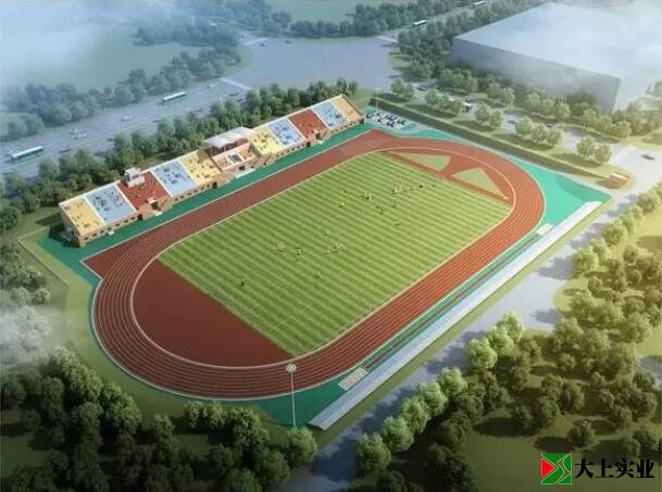 田徑場地為半圓式400米標準田徑場,半徑為36.5米,直道長145米,直道和彎道均為8道布置,北南半圓設跳遠沙坑2個,跳遠區(qū)設置2條跳遠助跑道,鉛球投擲區(qū)設置2個,內(nèi)設標準足球場一片。