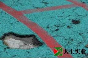 幼兒園兩個操場的地面出現了一個個大大小小的坑,跑跑跳跳的時候要非常小心;操場上還累積了很多黑色的污漬,老師們怎么清洗也洗不干凈。
