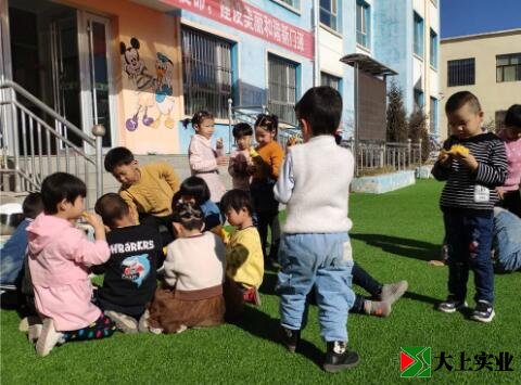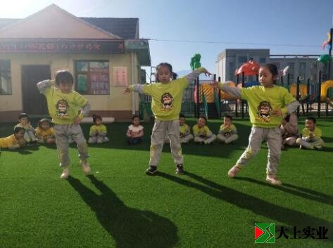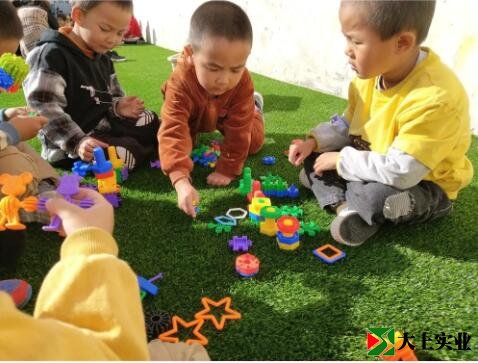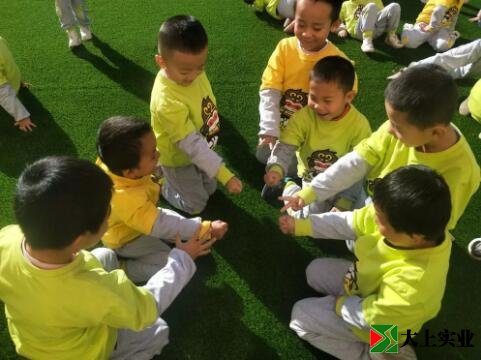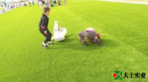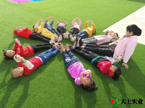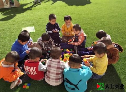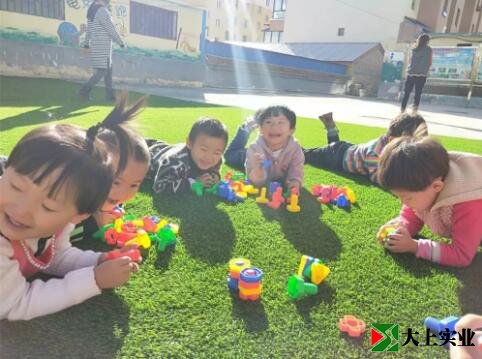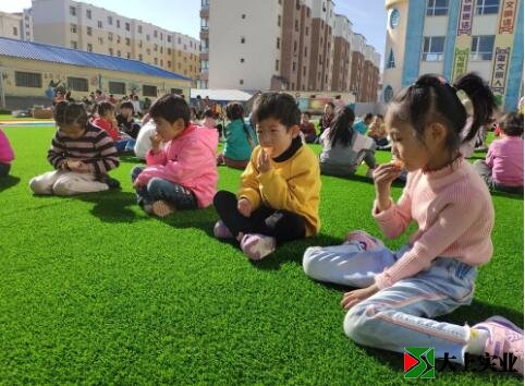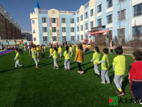 幼兒園土操場改鋪設(shè)人造草坪 萌娃們歡天喜地