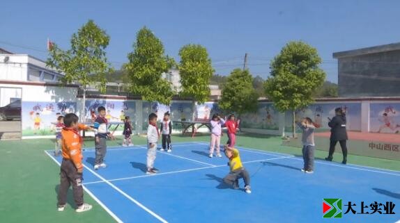 中山西區扶貧隊駐揚名村干部看著教學點幾十個留守兒童,每天在不甚平整的水泥地板上畏手畏腳進行體育鍛煉,萌生了為孩子們建設一個安全、環保的塑膠運動場的念頭。這個想法很快就得到了幫扶單位的支持,經過實地考察、立項、施工······不到半月,投資6.7萬多元嶄新的、高質量的硅PU材質學校塑膠運動場建設完成了。