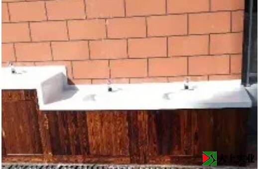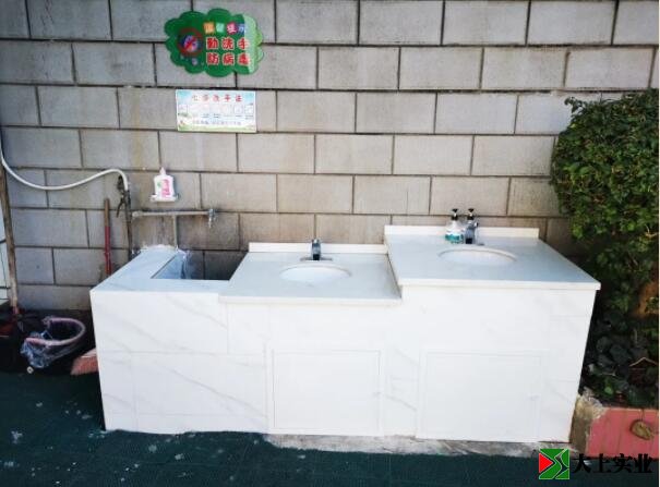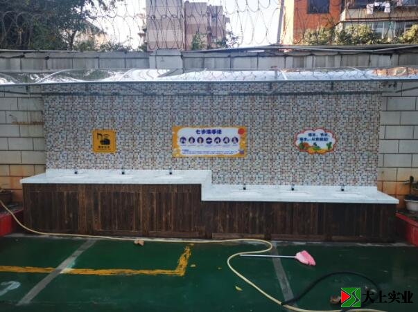 螺峰校區在操場旁建設安裝了1高2矮的感應洗手臺一個