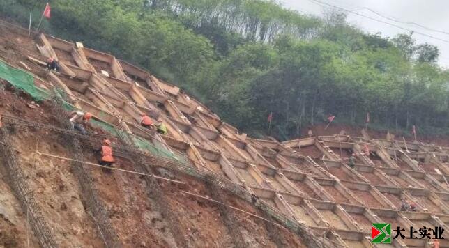 后山被新挖出的陡坡,長達290多米,平均高度近30米。為預防滑坡,投入大量資金,做龐大的空格梁護坡工程。晝夜施工,歷時四月。