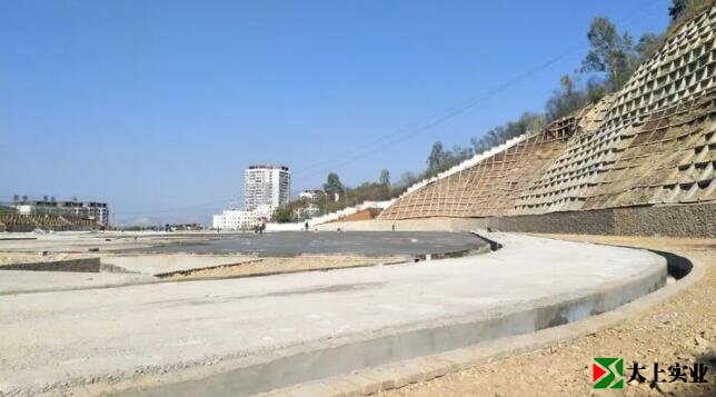 往部分空格梁框填土固坡