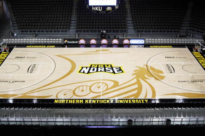 以通過在籃球場上繪制一艘華麗的(巨大的)維京船來展示北歐品牌,維京船在海上升起,是對田徑運動起義的隱喻