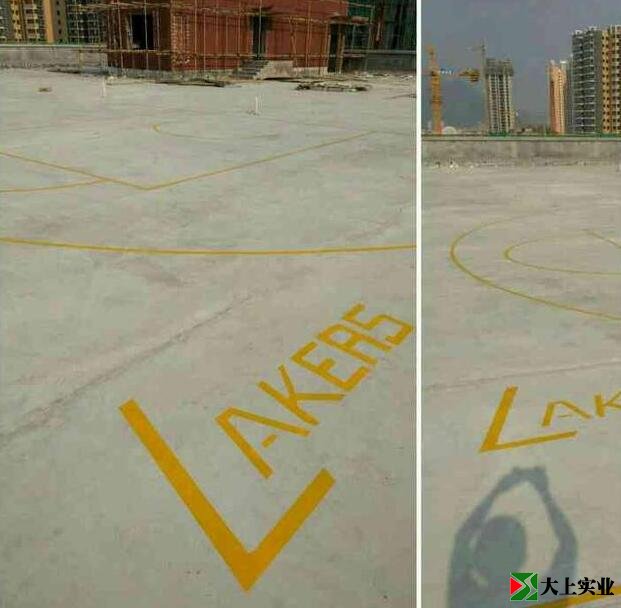 先定位放線,畫出籃球場,然后粘膠帶,準(zhǔn)備刷漆