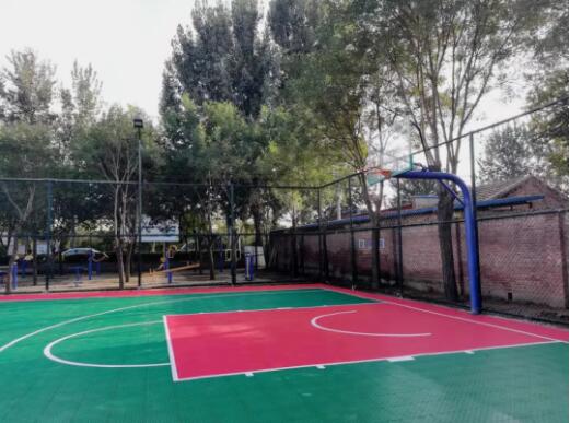 如今的籃球場煥然一新,以紅、綠色為主色調(diào),在藍天白云的映襯下顯得格外酷炫。