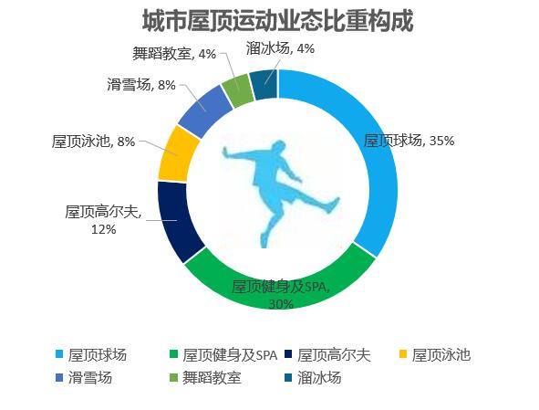 在屋頂運動業態中,屋頂球場、屋頂健身及SPA會所占比最為突出,達到65%。從普及率來看,高爾夫、舞蹈教室、溜冰場屬于小眾運動業態,并不適合大規模在建筑屋頂布局;從建造及運營成本來看,屋頂泳池、滑雪場的建筑條件要求高,成本巨大。相比之下,兼具大眾普及率和成本可控性的屋頂球場、屋頂健身及SPA會所在運動業態中最受青睞。