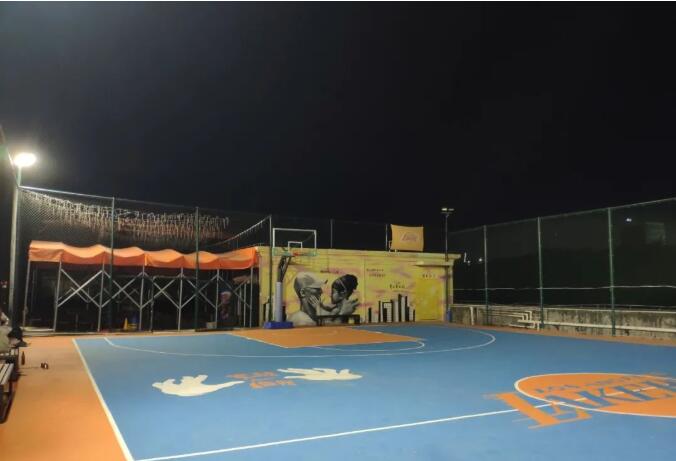 場地是水泥地,樓頂改造成的籃球場,有點類似于主題籃球場吧,處處是科比的涂鴉。人也不咋多,有一群小孩子在旁邊訓(xùn)練,就我們幾個大人。不好的地方就是廠旁總是飄來一陣陣下水道味,好臭的,所以我們就去另一個半場打球了哈哈