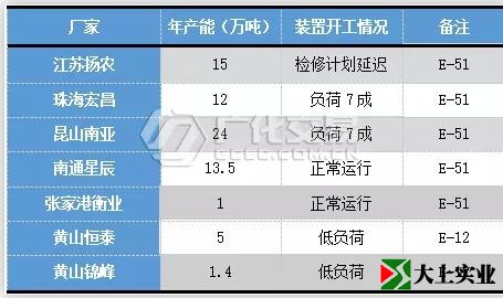 供應面。當前,液體樹脂生產裝置負荷維持在5成上下,華東地區液體樹脂生產裝置負荷低位,負荷提升緩慢。其中,江蘇揚農15萬噸/年環氧樹脂裝置繼續延遲檢修計劃;南通星辰16萬噸/年環氧樹脂裝置已重啟;廣州宏昌8.5萬噸/年環氧樹脂裝置停車,珠海宏昌12萬噸/年裝置開工7成。受環保檢查因素影響,黃山地區固體樹脂生產裝置低負荷運行。