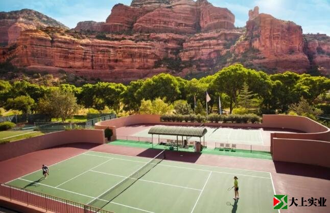 3、紅色巖石峭壁下的網球場