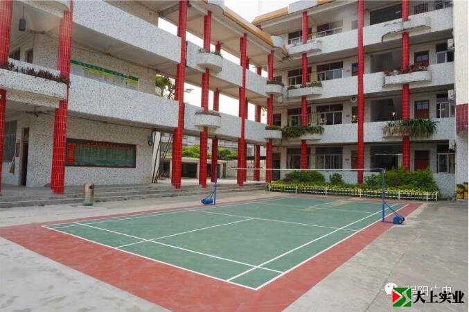 教學樓前是嶄新的羽毛球場,一旁的綠化也顯得生機勃勃