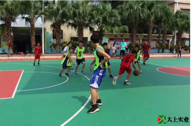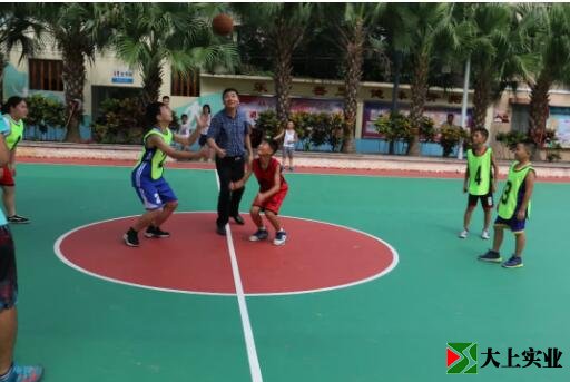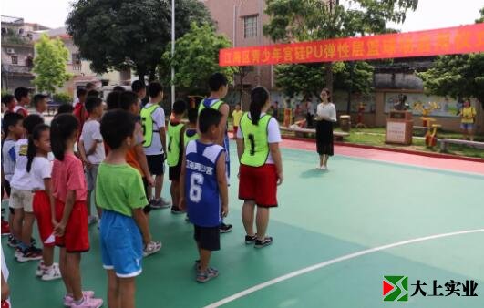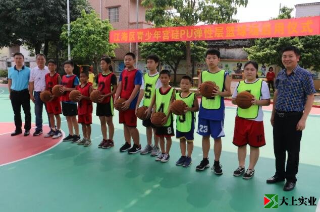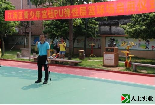 梁漢強主任宣布:“江海區(qū)青少年宮硅pu彈性層籃球場正式啟用”!