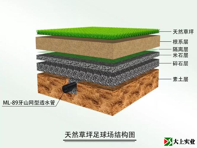 基于環(huán)境保護和運動安全考慮,大上實業(yè)總結(jié)了天然草坪及棒球場紅土層做法,發(fā)明了一種可塑透水軟基礎(chǔ)結(jié)構(gòu)及施工方法,該可塑透水軟基礎(chǔ)透水性好(無積水現(xiàn)象)、可塑性好(平整度容易控制)、硬度適中(接近天然草坪足球場硬度)。同時,若想把人造草坪改成天然草坪,只需清除掉人造草坪面層,對原有基礎(chǔ)簡單處理,便可直接種植天然草坪,實現(xiàn)了人造草坪和天然草坪之間的自由切換,簡單、方便、耗資少。
