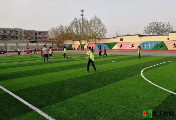 此次修建的是標(biāo)準(zhǔn)的“五人制”足球場,長37米,寬22米,總投資近10萬元。經(jīng)過3天清明節(jié)假期趕工,一個(gè)按照五人制比賽標(biāo)準(zhǔn)設(shè)計(jì)建造的全新足球場正式落成。人工草坪足球場有兩條邊線、兩條球門線、兩條禁區(qū)線以及中線和中圈均為白色,草坪草綠與淺綠相間,線條清晰,色彩鮮明。