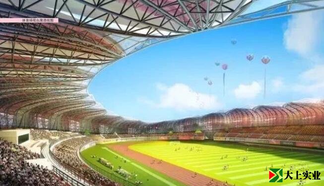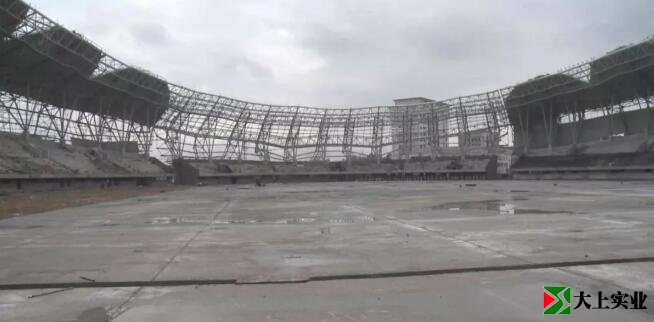 體育場土建工程,體育場主體基礎及上部混凝土已全部澆筑完成,體育場內部足球場地已平整完成。鋼結構工程,A、B、C、D區所有主體鋼骨架安裝完成。