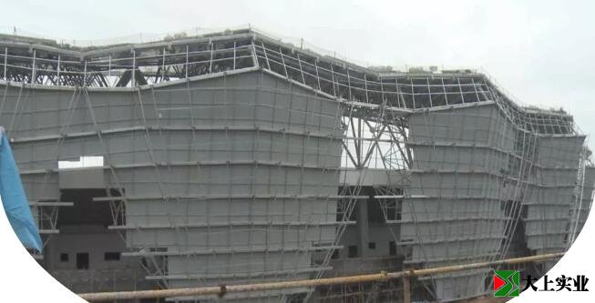 A、B兩區外部圍護結構(百合花造型彩色鋁單板)安裝完成40%;玻璃、石材幕墻工程,體育場門窗框安裝完成90%;水電安裝(暖通)工程,水電完成預留預埋,橋架安裝都已基本完成。
