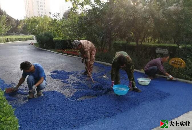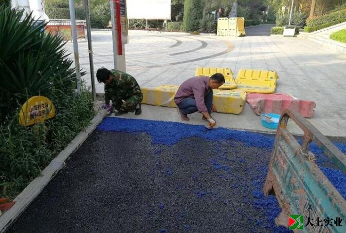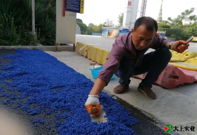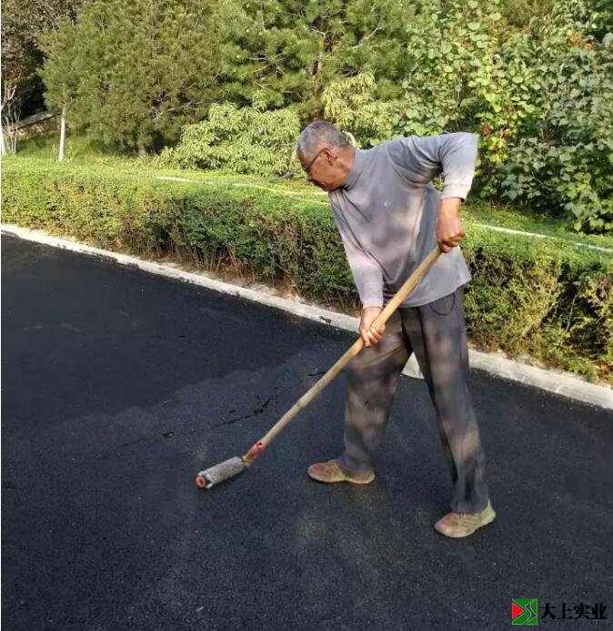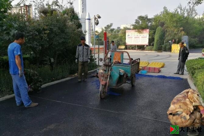 作業人員先對瀝青路面涂刷粘合膠,確保塑膠層和瀝青路面達到預期的粘合效果。