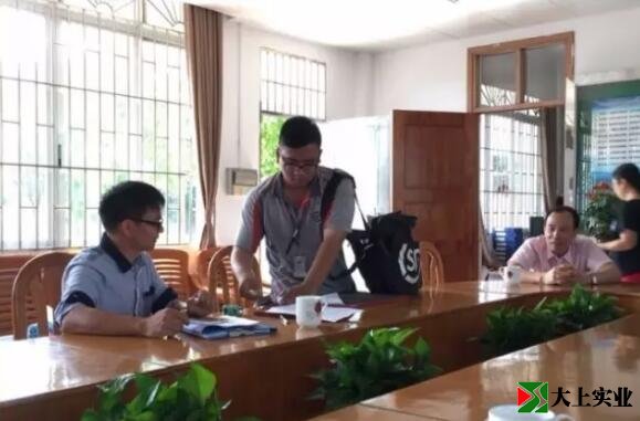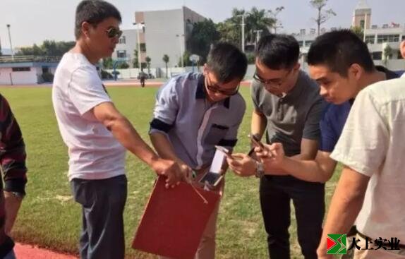 由施工方、工程監理、學校、村委領導、家委會代表組成的運動場塑膠質量檢測送檢現場