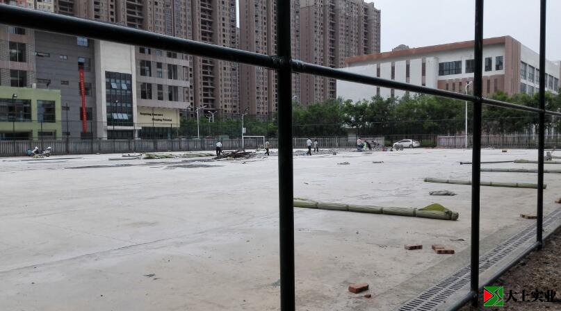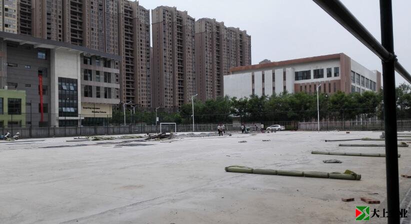 原來這里是一片黃土加荒草地,現在中小學都開始試點足球學校,學校就把它建成足球場,這是開始鋪水泥基平面了,還是一條一條地鋪開來,便于施工。